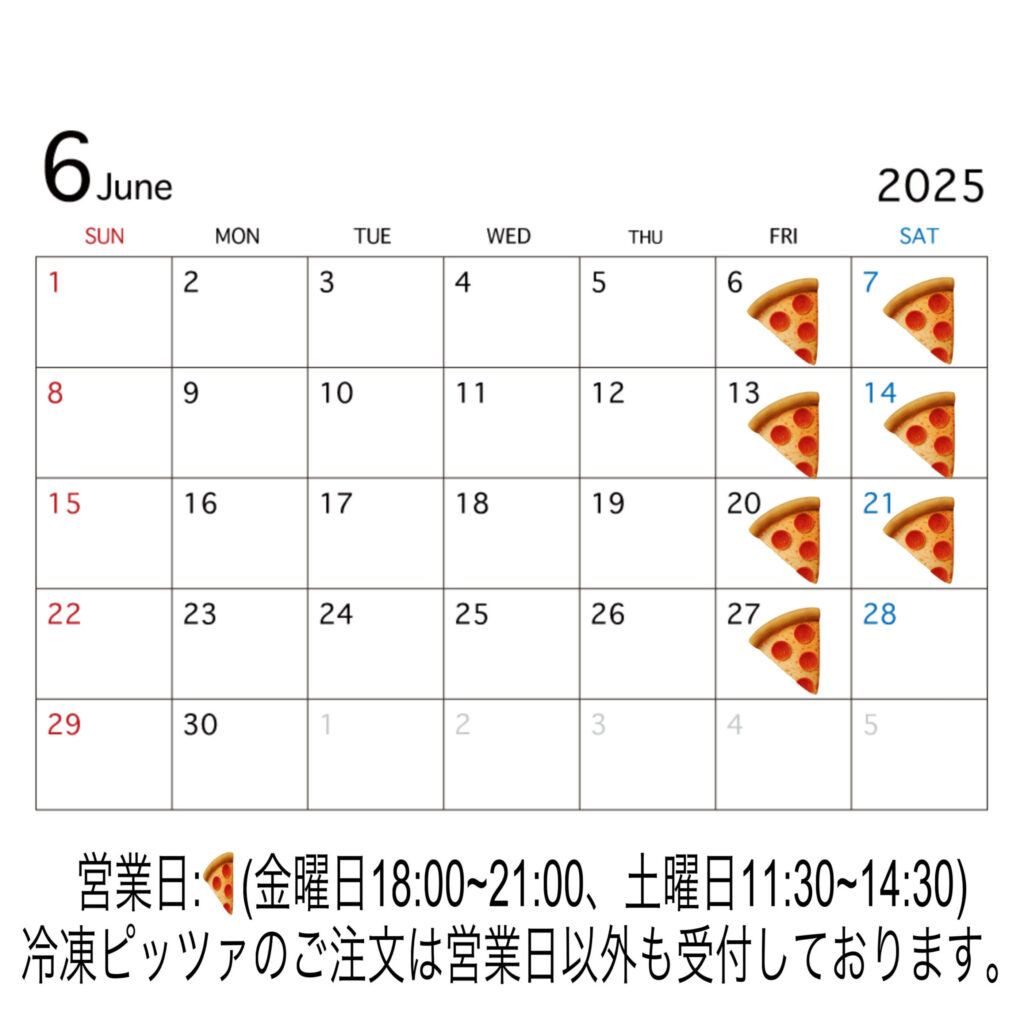 6月の営業カレンダーです。