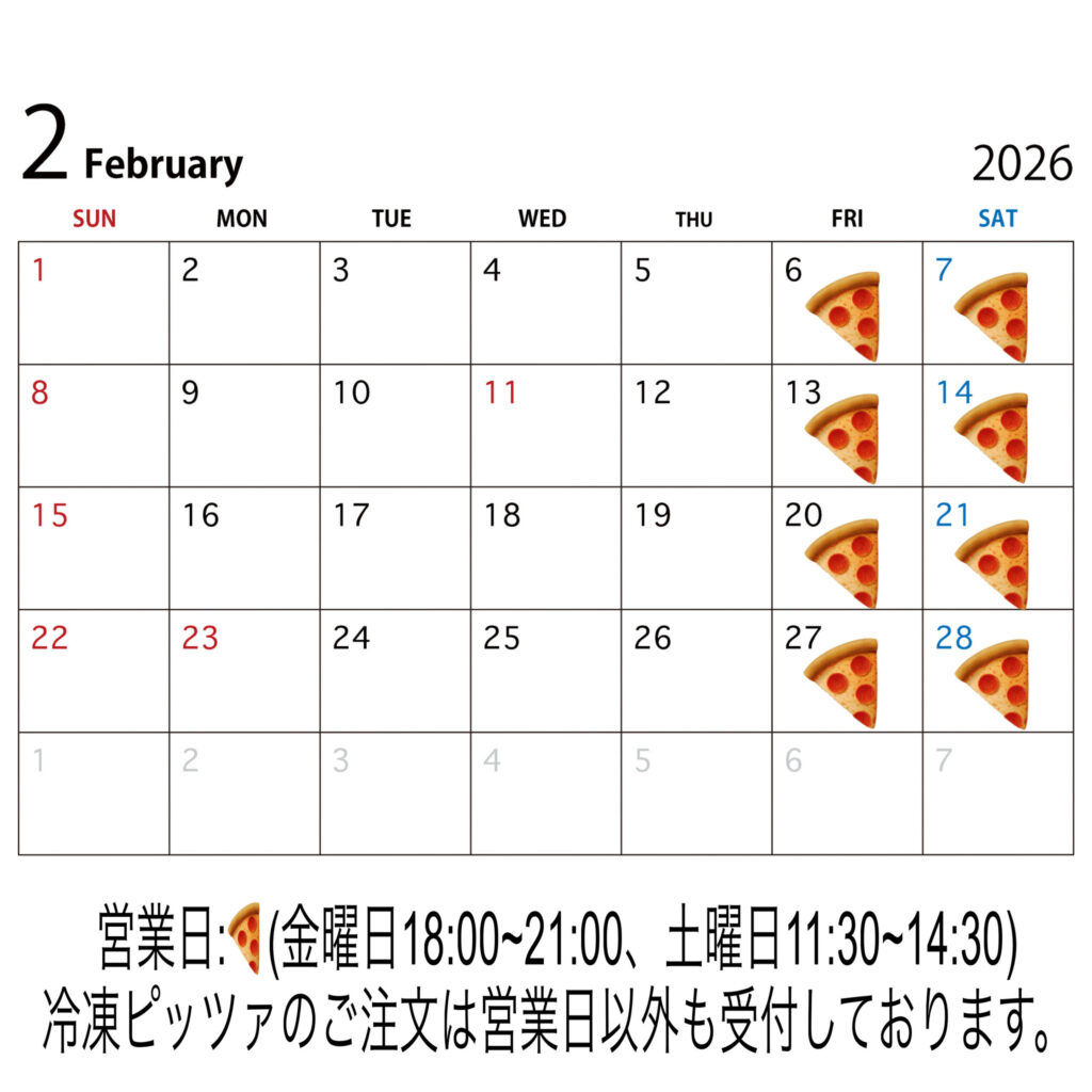 2月の営業カレンダーです。